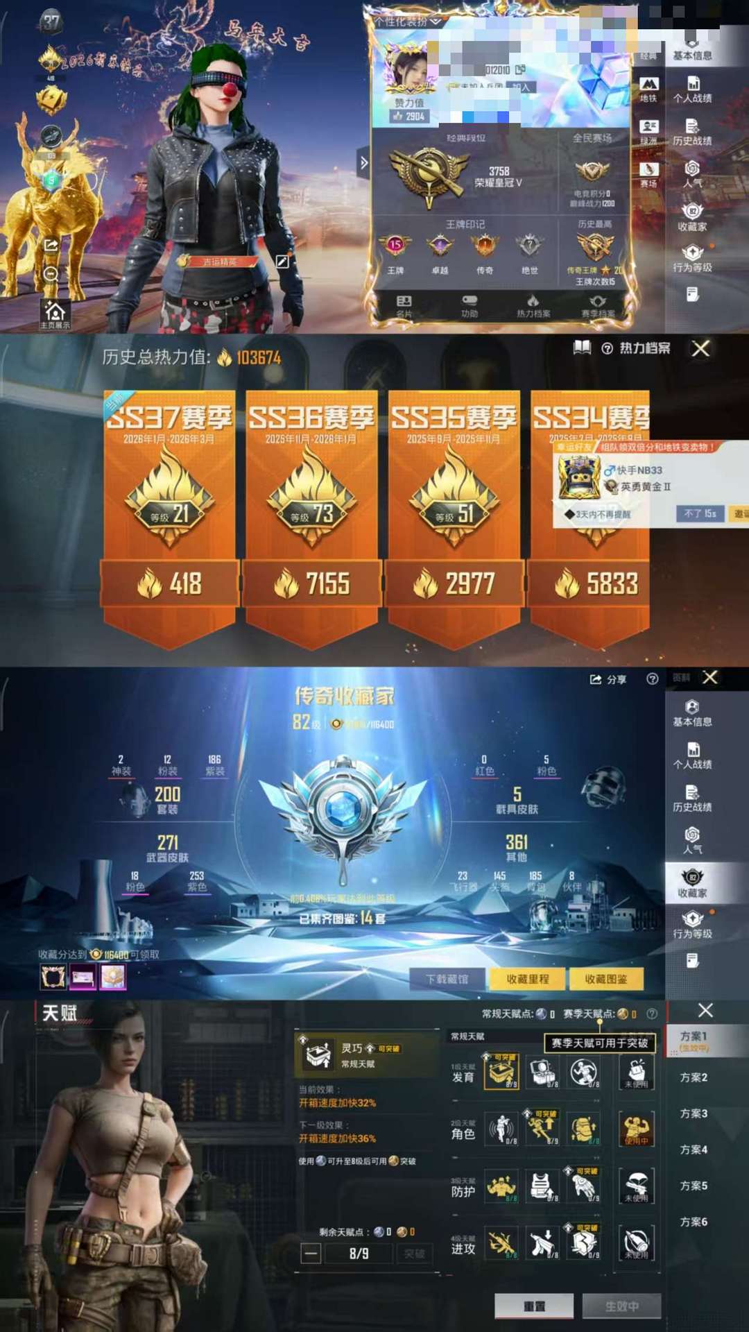 限制: 租号1次及以上 |装备描述:速玩⚡2级艾丽娅熬渊⚡素材男神身法套⚡小丑星梦奇缘觉醒螳螂⚡6级AKM魔法神域⚡保时捷帕美紫
