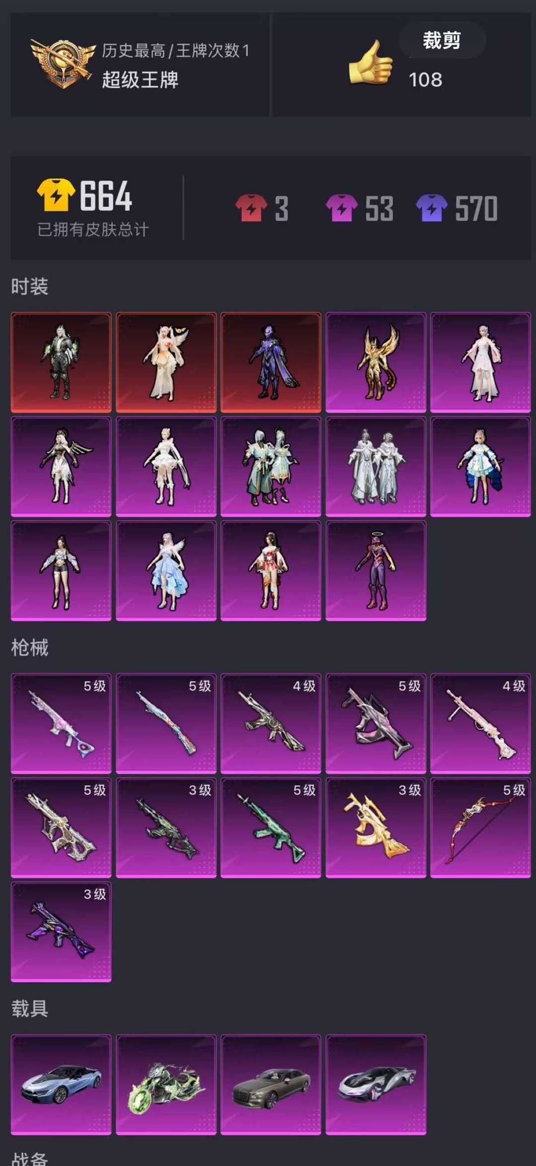装备描述:三红装,维塔,宇宙意志,精灵之光,4车,11升级枪。 喜欢本账号请点 ☆收藏☆ 方便下次租用,谢谢光临惠顾!