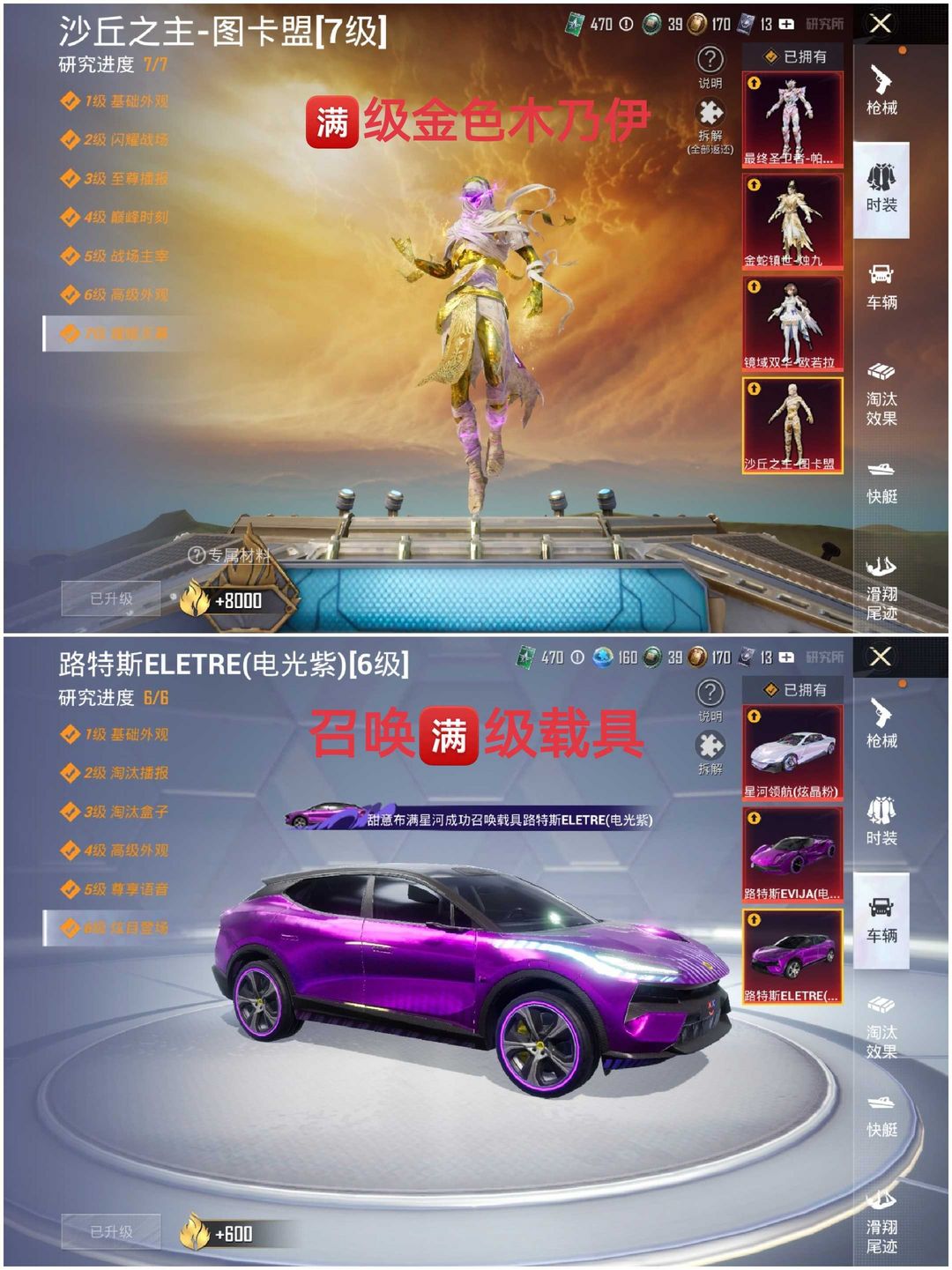 ⭕非速玩⭕〖满级金色木乃伊〗召唤〖满级紫色路特斯〗④红装③红车⑩载具☀五把9级计数枪☀满级手雷烟雾弹