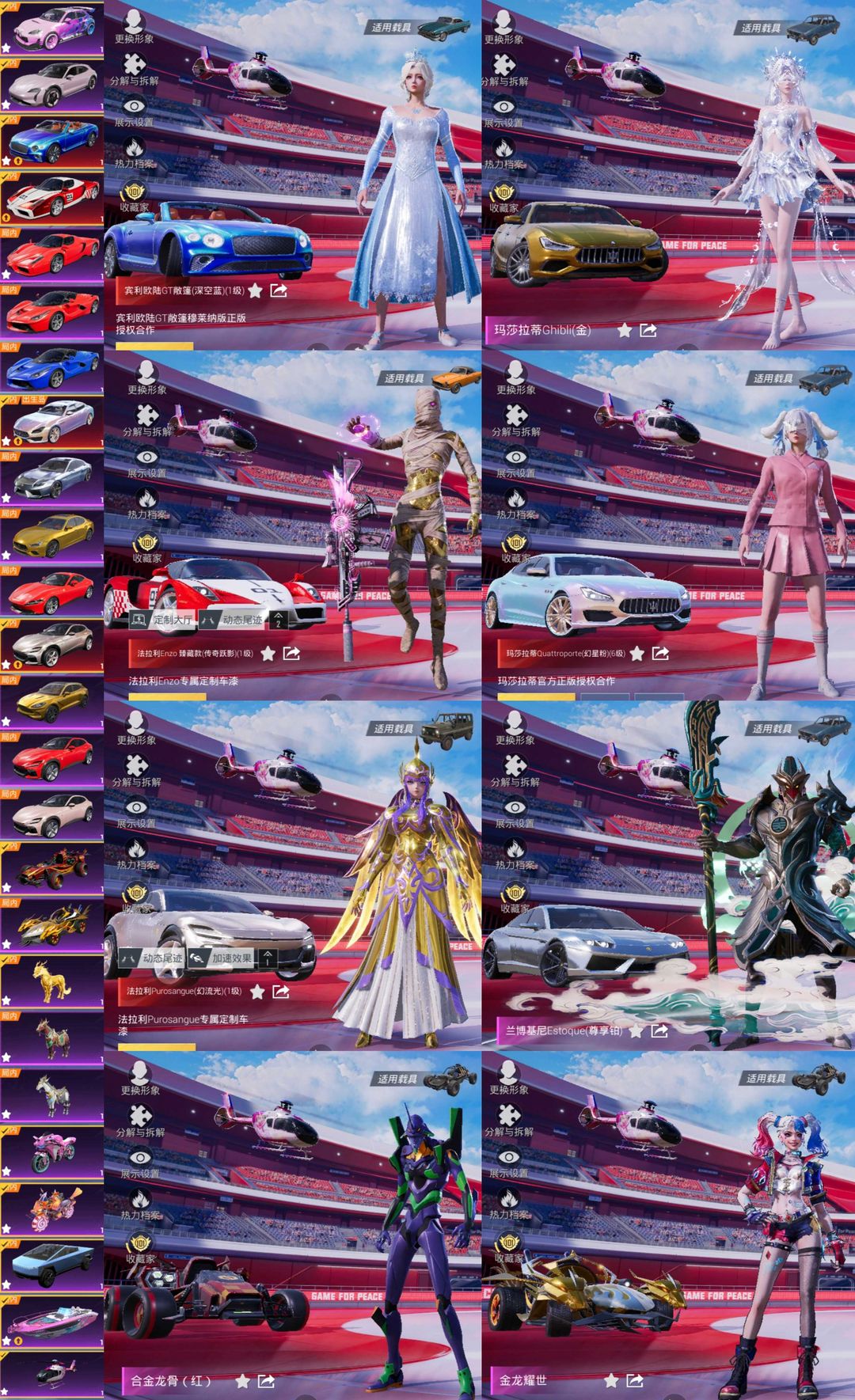 老101/红装木乃伊.关羽♕法拉利恩佐.满级玛莎~全载具♕满级超新星♕月中灵.小舞.小丑女.紫螳螂~