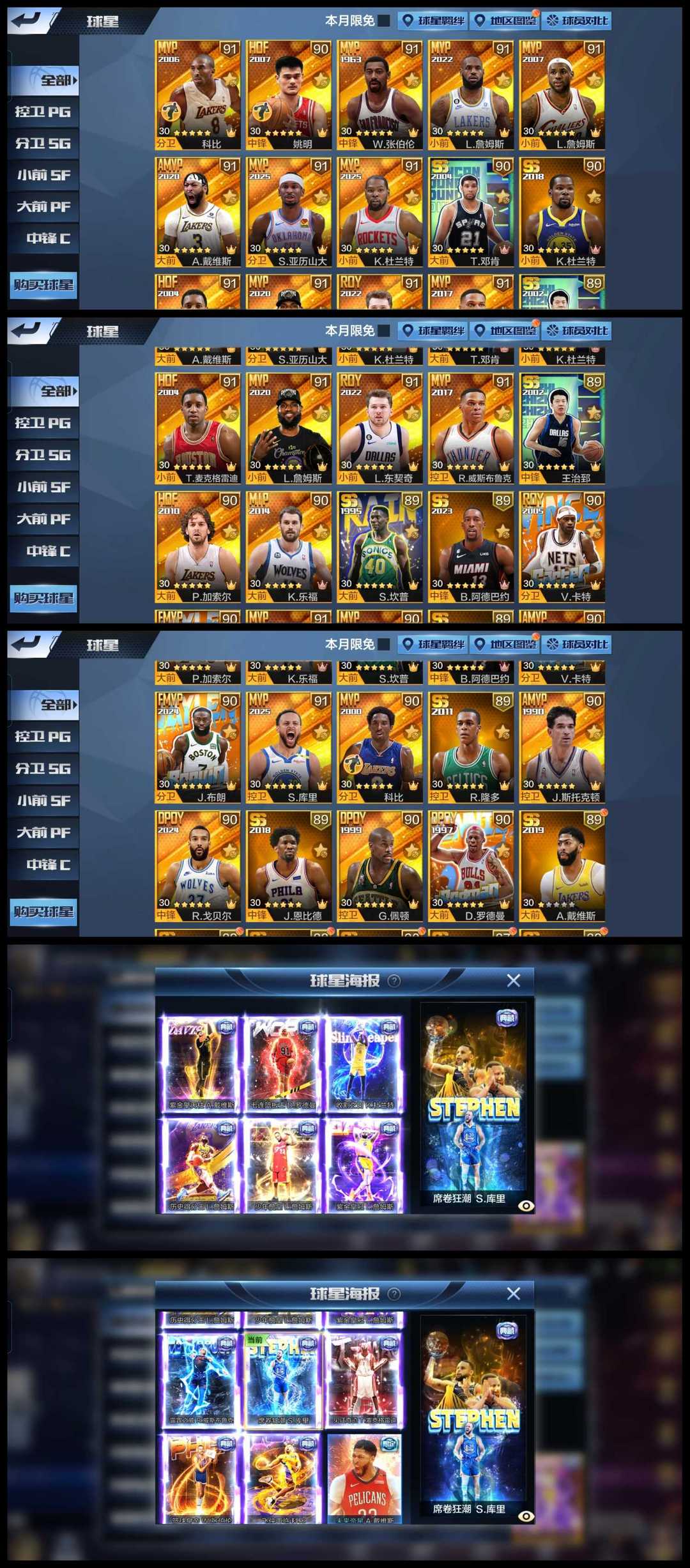 卷毛二专属♥火杜库里麦迪♥可排位♥大帅湖詹姚明二专属♥屠龙二专属♥压力浓眉♥16天选12典藏