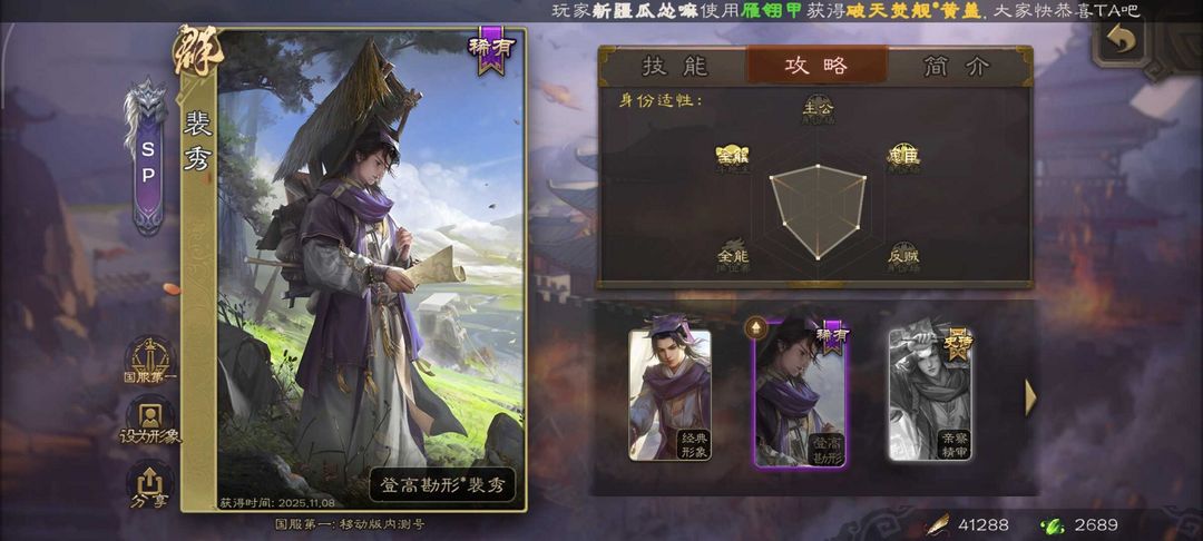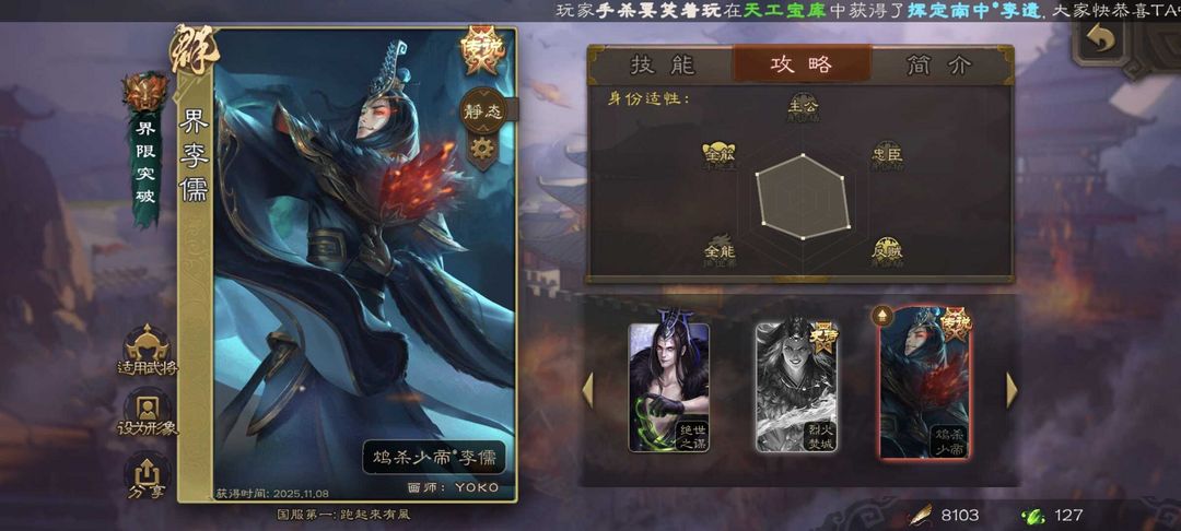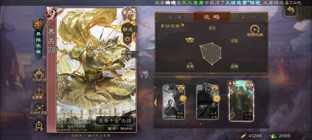 有卡/尝鲜专享/圣垂千古至尊界关羽/裴秀/玉龙友徐庶/鸠杀少帝界李儒/回廊神赵云