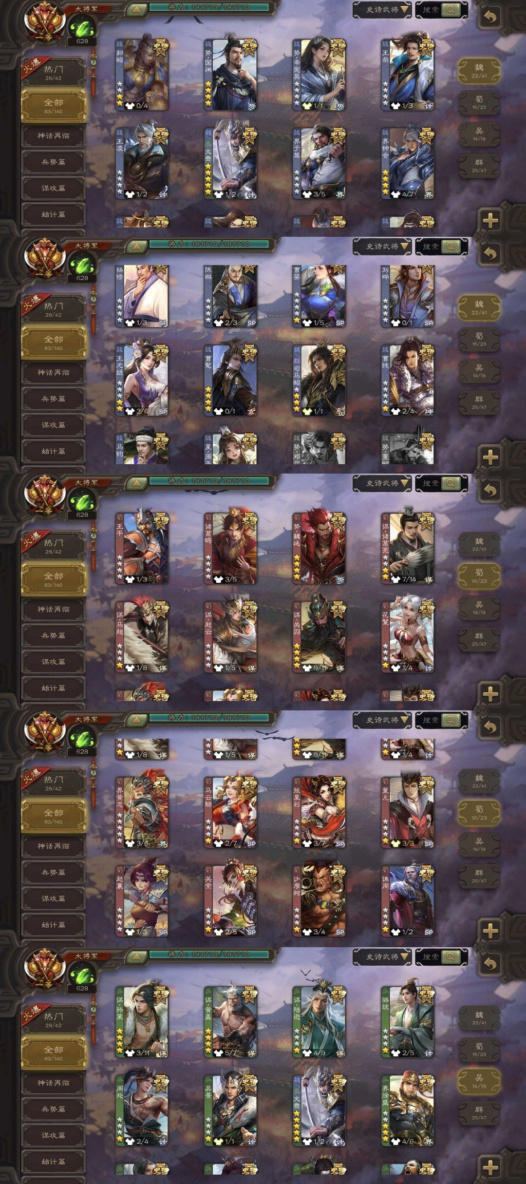 有卡/荡然由心势鲁肃/势魏延/势国渊/动势辛宪英/傲绝凌顶谋孙策/奇门花鬘/刘焉/至尊文鸯/至尊神郭