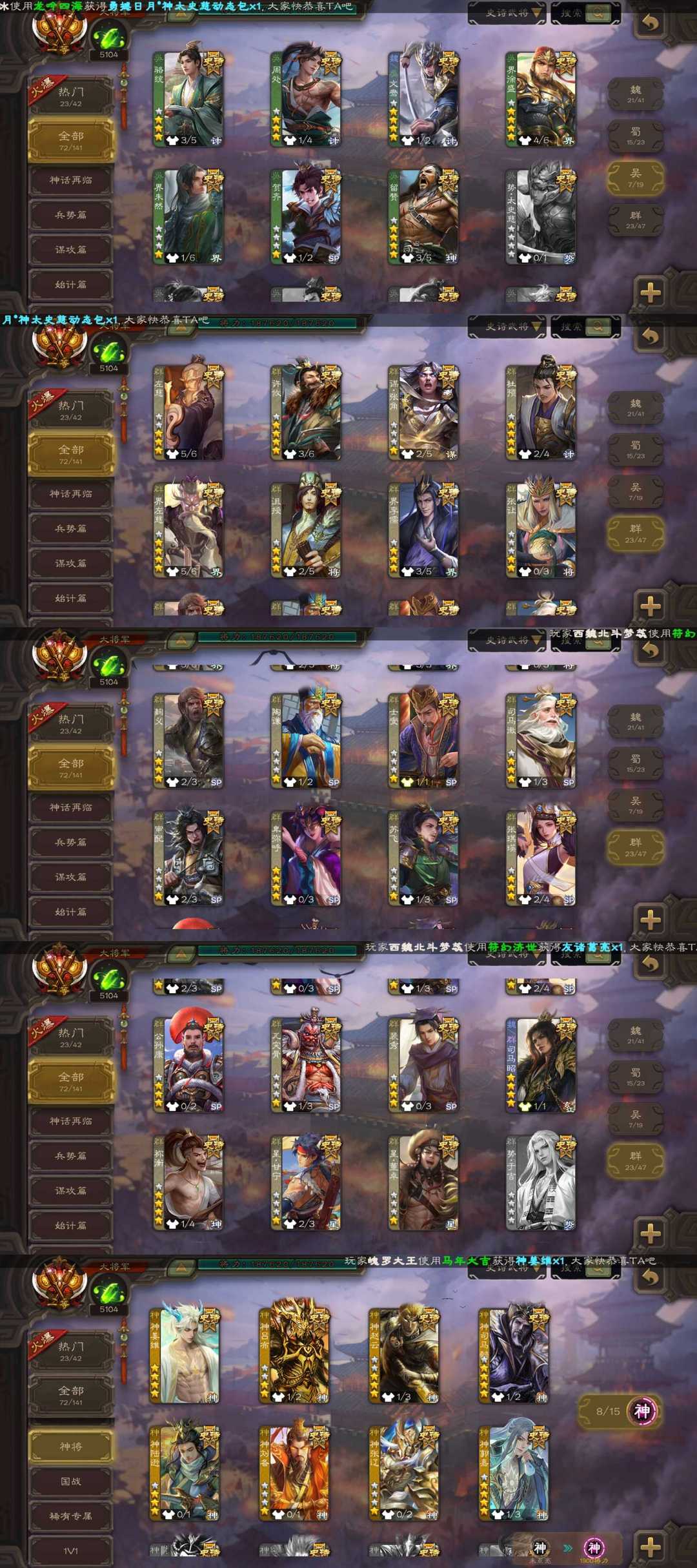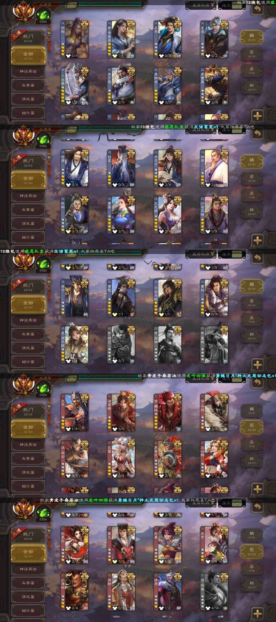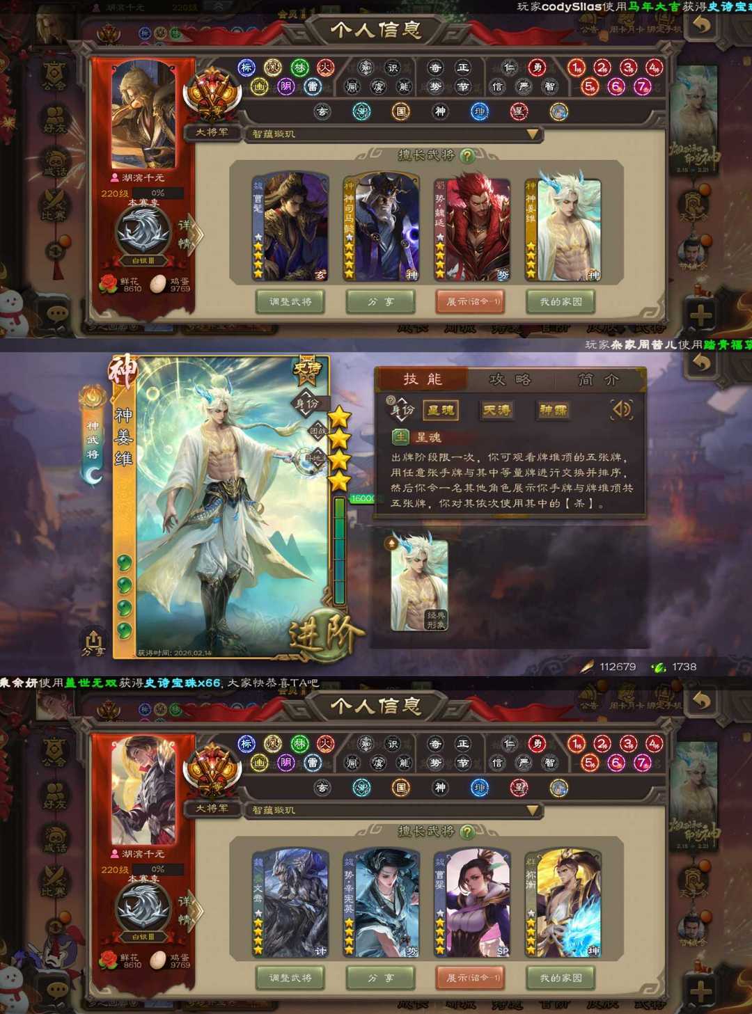 装备描述:一等大将军72史诗最新权一神姜维/枭龙破渊双形态曹髦/势魏延/动态神司马懿/动态势辛宪英/神郭嘉/动态文鸯/动态祢衡/裴秀/动态司马昭/蒋干等史诗,动态优秀
