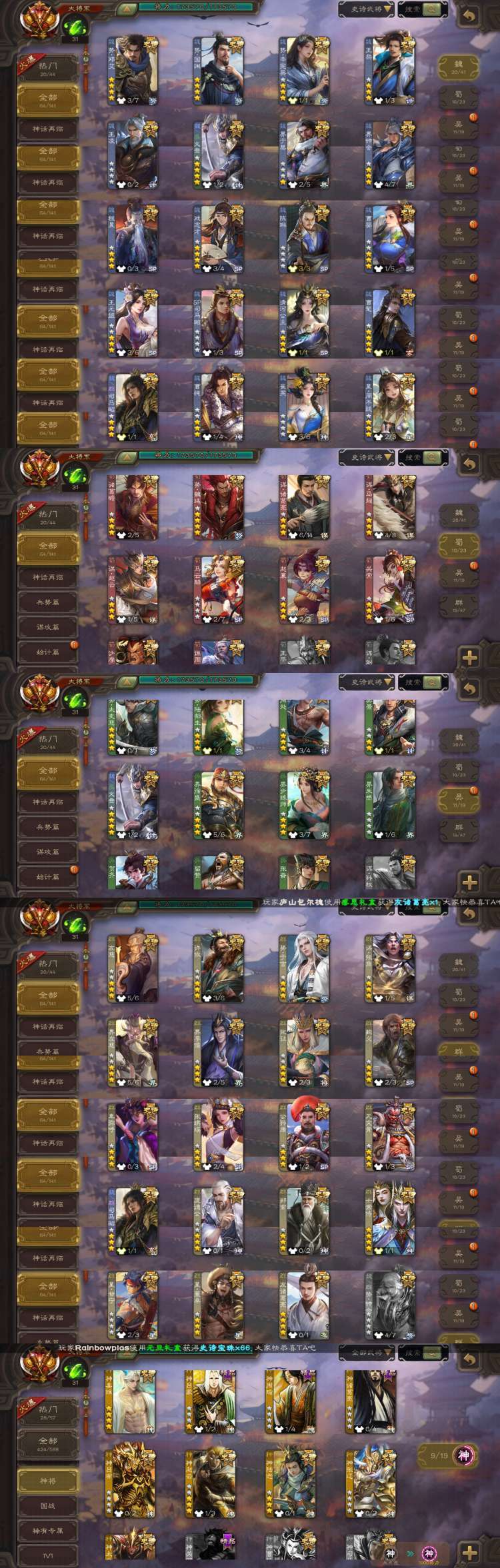 装备描述:169排位武将★64史诗一等大将军神姜维势邓艾势魏延崔芙势国渊枭龙破渊曹髦回廊十常友诸葛亮侍势辛宪英王粲王凌动文鸯界于禁动界钟会动戏志才动曹婴动王元姬sp司马昭清河公主司马昭动星周不疑诸葛瞻动谋诸葛亮动谋马超谋赵云动马云禄赵襄动关索沙摩柯谯周势太史慈势陆郁生动周处吴景动界徐盛动界步练师界朱然动留赞动张奋动许攸势于吉谋张角动界左慈动界李儒动张让动麹义卑弥呼动张琪瑛公孙康庞德公郑玄动星甘宁星董卓神吕布动神赵云神陆逊神张辽动神太史慈阎象鲍信关银屏动曹昂朱儁谋韩当懂谋吕蒙霍峻李昭焦伯谋诸葛瑾动谋郭嘉动甘夫人势陈到曹叡糜竺动界孙权胡金定界廖化动星徐晃高览蒋钦界吴懿曹嵩动谋黄月英动谋荀彧界全琮动谋高顺谋祝融懂谋小乔李遗陈珪谋张辽友徐庶谋夏侯渊势孙韶吴珂势田丰势鲁肃动界孙尚香鲁芝张翼界满宠陈震袁涣崔琰谋徐晃谋马超谋卢植动谋周瑜界朱桓司马伷谋贾诩势夏侯尚势黄祖势王昶羊祜马元义动界蔡夫人谋杨婉毛玠张布乐就界魏延张春华