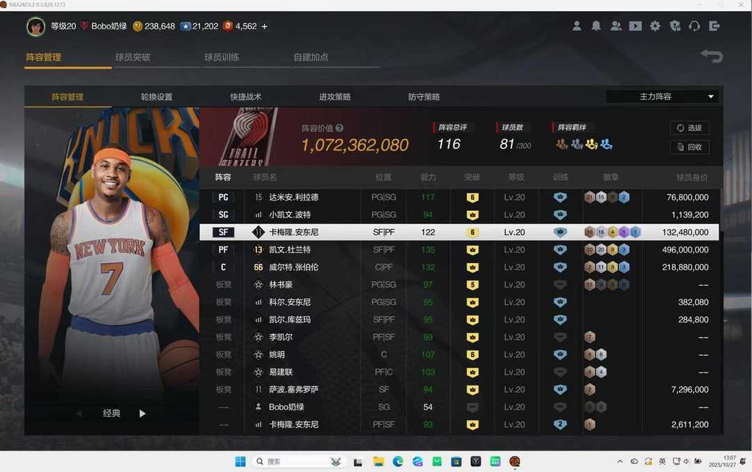 可排位⭐阵容双时刻杜兰特/双时刻大帅张伯伦/6安东尼/时刻6利拉德