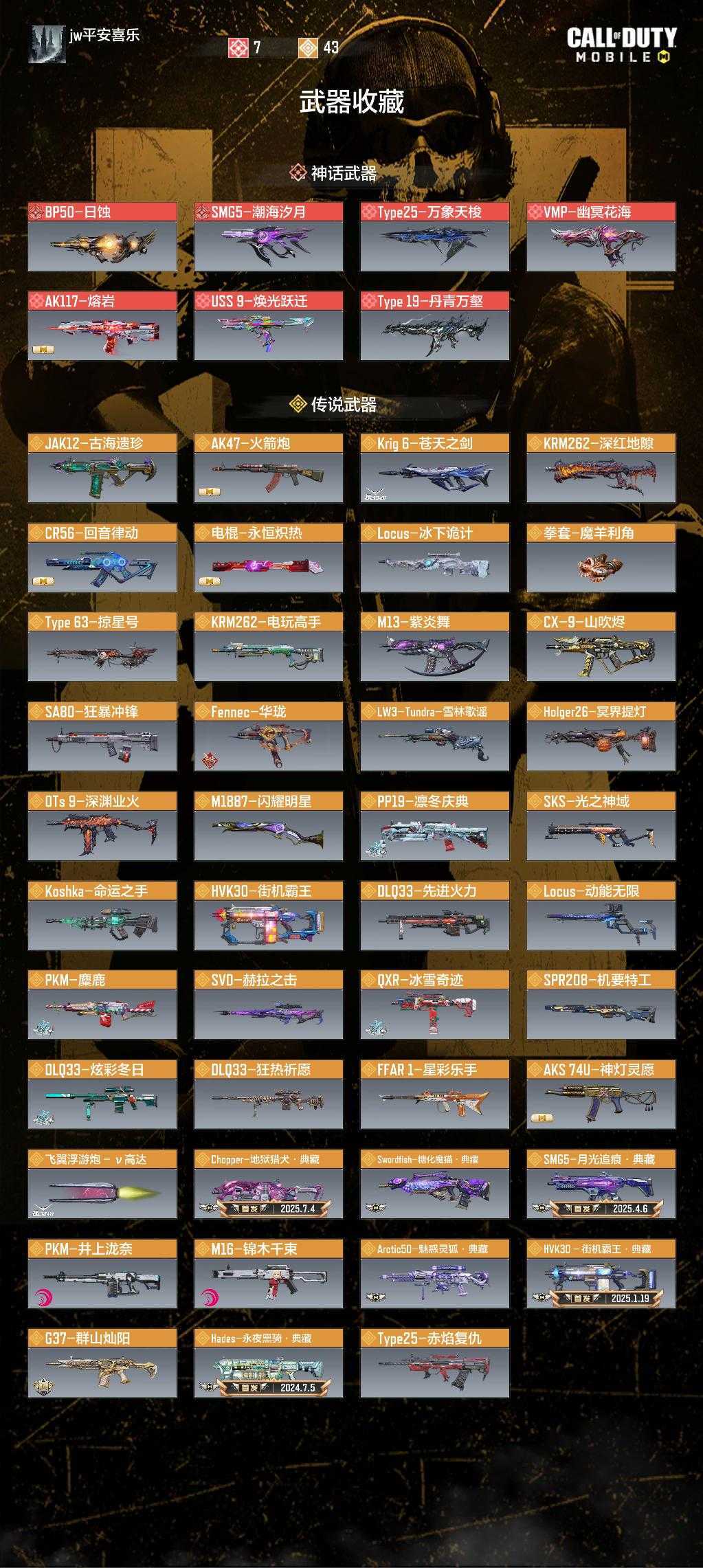 最新万象天梭✨7神话+45极品传说✨幽冥焕光丹青日蚀✨狼狙动能冰狙K狙✨潮海电玩闪耀喷✨莉可丽丝联动