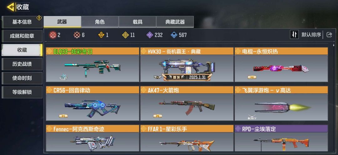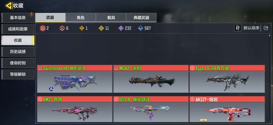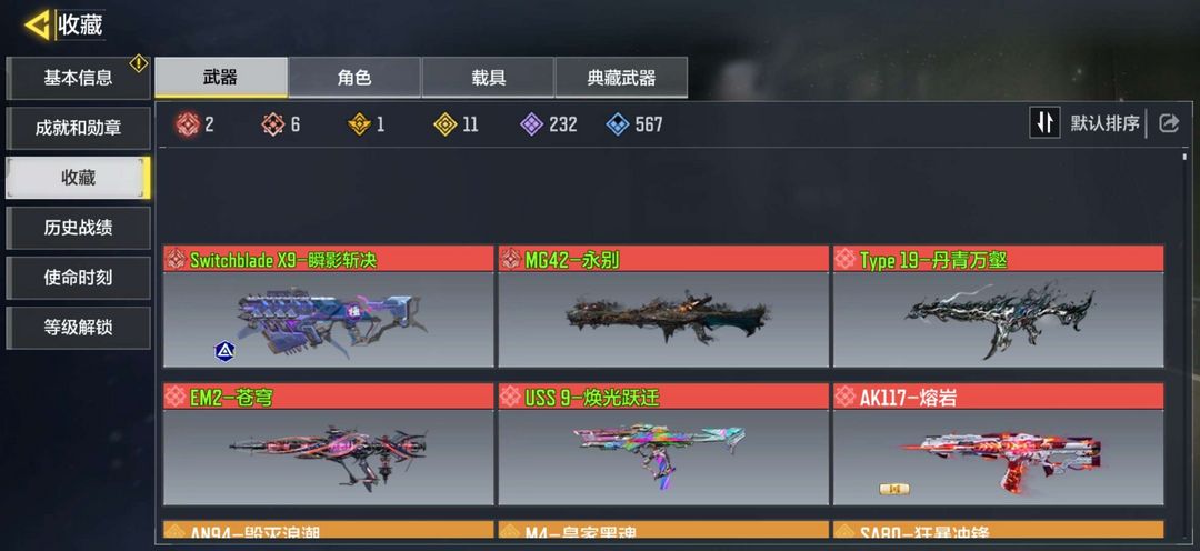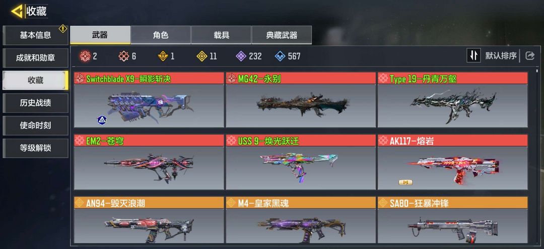 墨龙2级,sx9和mg42永别满级,uss9和em2神话4级,11把传说,一把典藏hvk30接机霸王