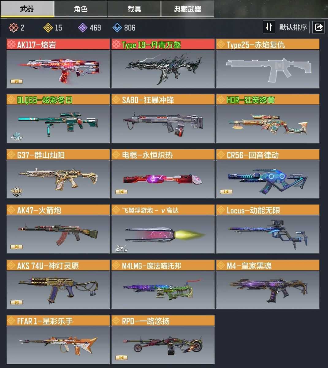 两神话Type 19-丹青万壑1级,AK117-熔岩,15个传说其中有炫彩冬日,动能无限。